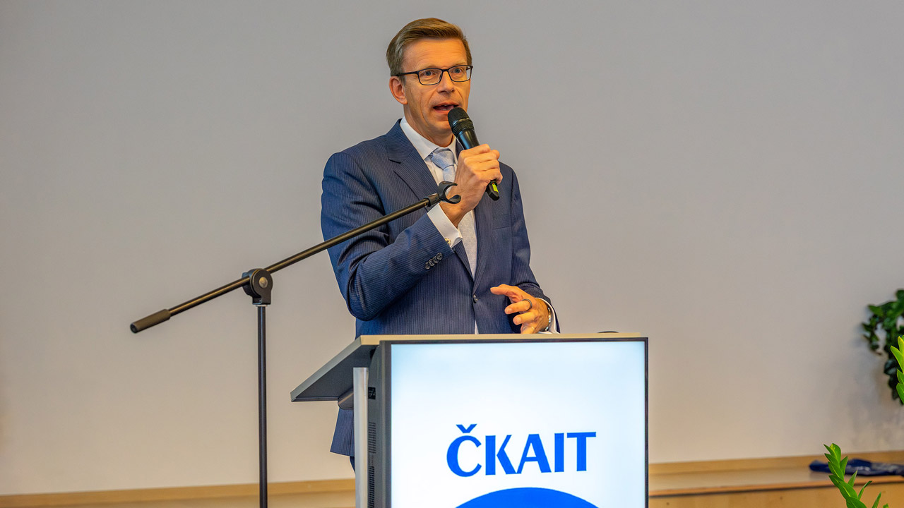 Ing. Milan Komínek, místopředseda oblasti Hl. m. Praha a Středočeský kraj, jednatel IC ČKAIT, místopředseda CACE, zastoupil předsedu CACE Ing. Milana Kalného