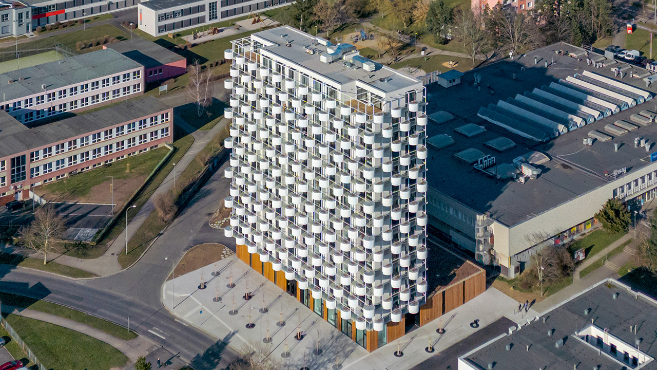 Čestné uznání poroty je uděleno za nápadité ztvárnění bytového domu, který se přirozeně začleňuje do stávajícího uspořádání sídliště. Nepřehlédnutelné je funkčně-estetické začlenění zeleně do výrazové struktury fasády a hravá barevnost v interiéru společných prostor. Zásadním odlišujícím prvkem je přístup k řešení fasády, která je tvořená z šachovnicově uspořádaných plechových půlkulatých květináčů s vybranými druhy dřeviny. Toto dynamické pojetí dodává objektu nezaměnitelný výraz s přidanou hodnotou přímého kontaktu se zelení pro každého uživatele bytu. Interiér společných prostor pracuje s kontrastem surového betonu a barevných akcentů odlišných pro jednotlivá patra budovy, včetně nápaditě řešeného schodišťového prostoru.