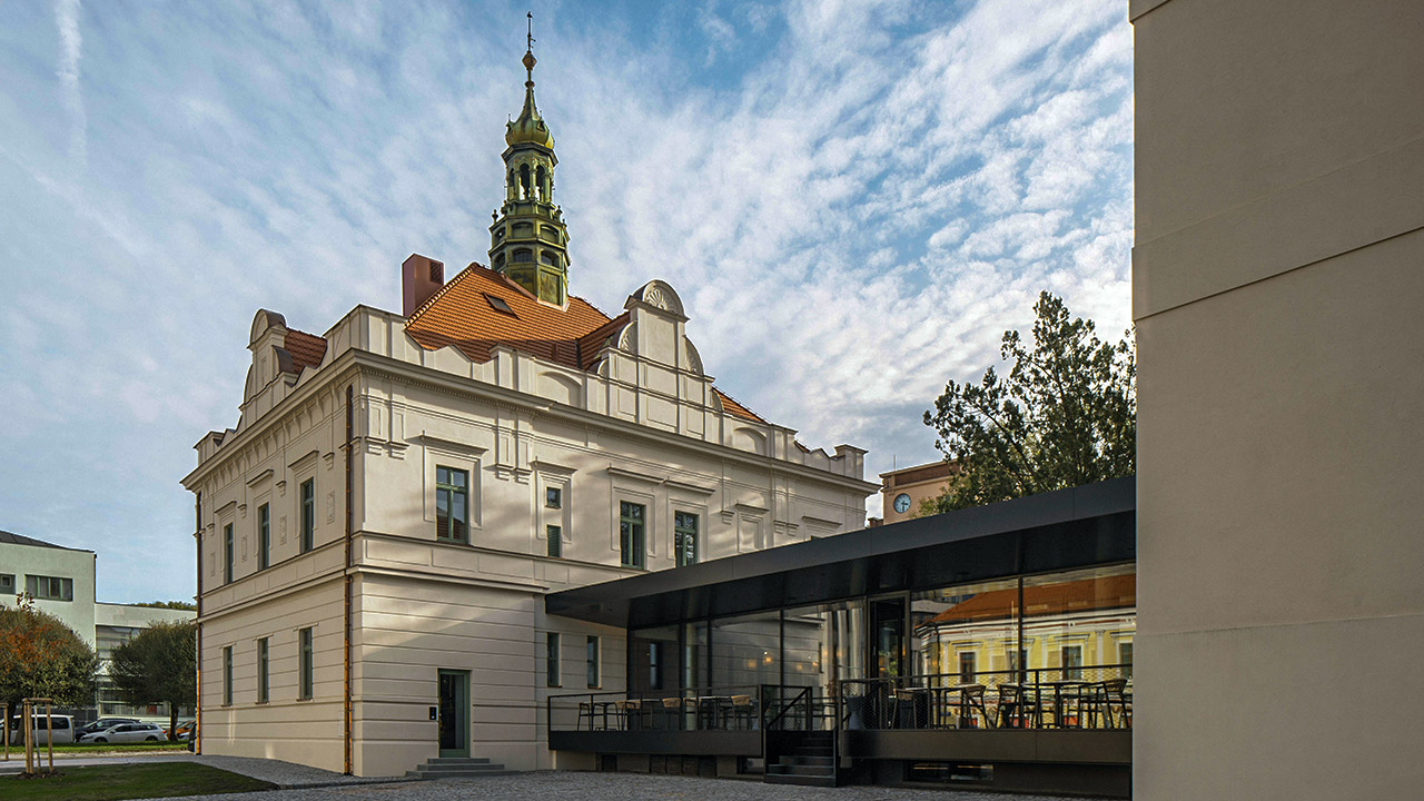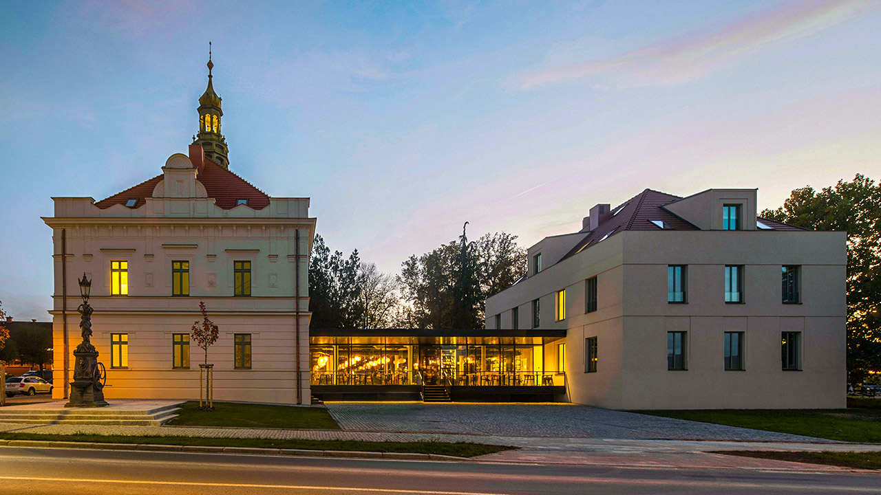 Citlivé a komplexně zvládnuté uchopení problematiky provázanosti historie a současnosti, propojení vnitřních prostor s vnějším prostředím a v neposlední řadě vdechnutí nového života této části města. Historickou budovu doplňuje citlivě a proporčně vyvážená novostavba. Hmoty si vzájemně nekonkurují, naopak vhodně se výrazově podporují a kompozičně vyvažují. Obě tyto části jsou elegantně propojeny nízkou prosklenou transparentní hmotou, která vzdušně prolíná interiér s exteriérem, a podtrhuje tak začlenění budovy do lokality a veřejného prostoru. Nelze přehlédnout, že celý stavební počin dokázal pozvednout blízké okolí a dodat mu punc noblesy.