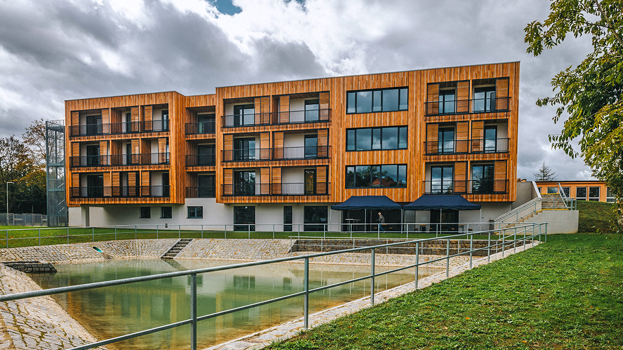 Kultivované a vizuálně atraktivní ztvárnění nového bloku D v areálu sociální péče. Důraz na funkčnost, atmosféru a lidské měřítko činí z tohoto projektu inspirativní příklad. Elegantní fasáda, obložená dřevěnými svislými lamelami, působí vstřícně a zároveň reprezentativně. Její celkové horizontální členění je kompozičně podtrženo vloženými lodžiemi a stínicími systémy ve formě posuvných žaluzií, které zajišťují potřebnou dynamiku a současně plní svoji funkci. Vnitřní řešení zahrnuje promyšlené sdílené prostory, vhodně podporující komunitní život a mezilidské vztahy. Interiéry působí útulně, přitom však civilně a kultivovaně. Oceněna byla výstavba nového bloku D, který je přistavěn ke štítu stávajícího bloku B, proto došlo i k částečné modernizaci bloku B. Připravuje se druhá etapa.